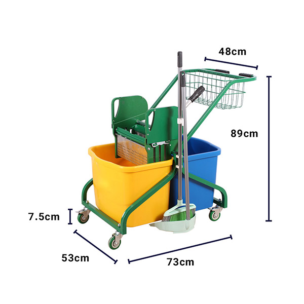 - ویژگی: دارای جارو و خاک انداز، دارای سبد حمل لوازم نظافتی