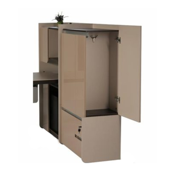 - جنس: MDF ملامینه با ضخامت 16 میلیمتر، قطعات نما از جنس MDF هایگلاس