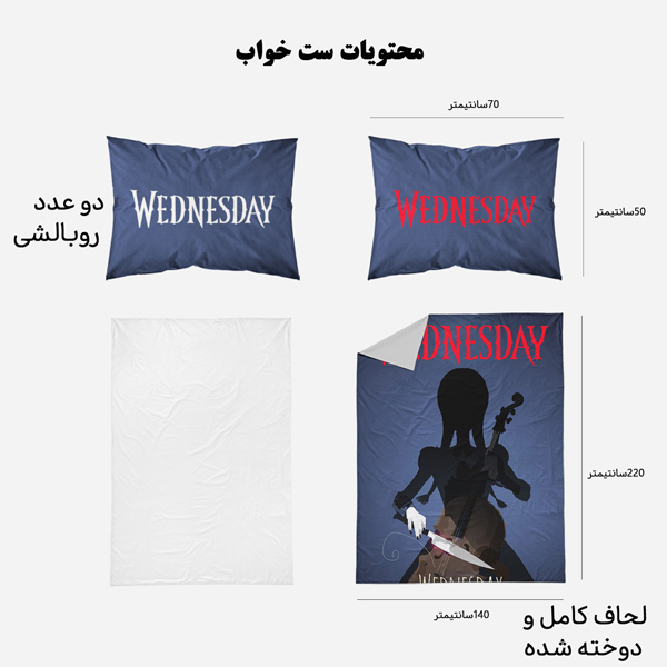 • ابعاد ملحفه: 1.5 نفره: 200 در 280، 1نفره: 180 در 280