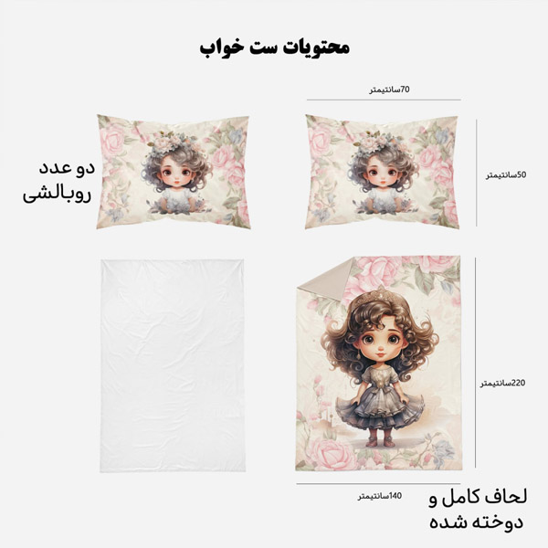 | ست کامل | 4تکه شامل: لحاف – کاور بالشت (2عدد) – ملحفه سفید کشدار |