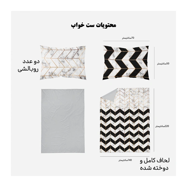 | ست کامل | 4تکه شامل: لحاف – کاور بالشت (2عدد) – ملحفه سفید کشدار |