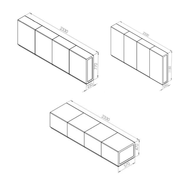 | ارتفاع | پشتی: 77 cm، دیواره: 115 cm، نشیمن: 47 cm |