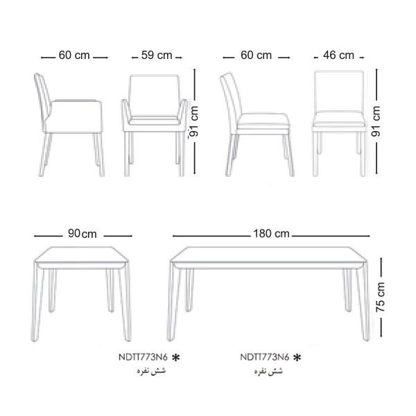 | اندازه میز 6 نفره | 180*90*75 cm |