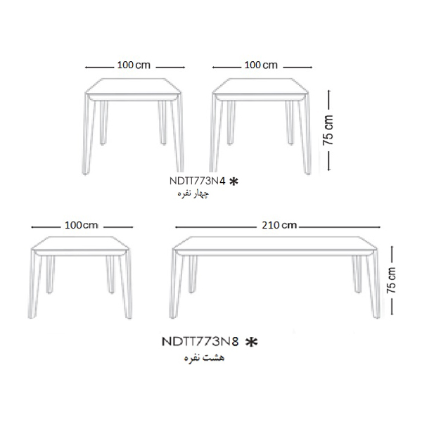| اندازه میز 4 نفره | 100*100*75 cm |