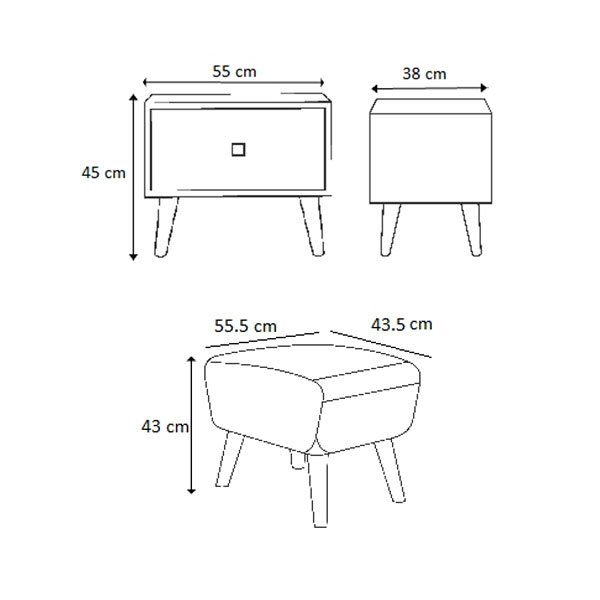| ست شامل | آینه، پاتختی، تخت، دراور، پاف |