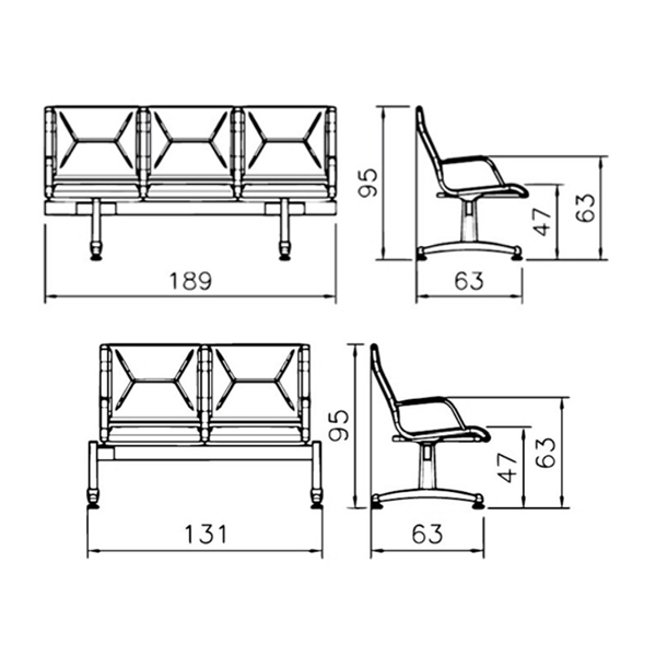 • طول: دو نفره: 131 cm، سه نفره: 189 cm