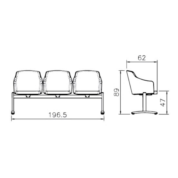 • طول: دو نفره: 129.5 cm، سه نفره: 196.5 cm