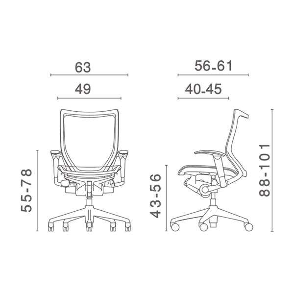 | ارتفاع تا نشیمن | 43-56 cm |