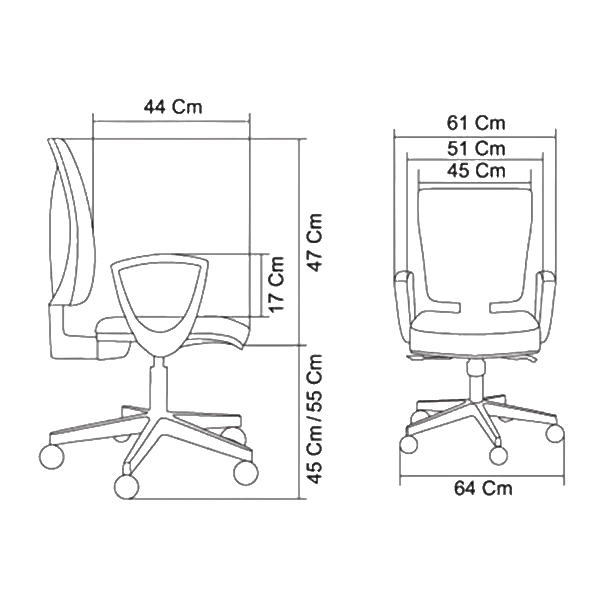 - ارتفاع تا نشیمن: 45-55 cm
