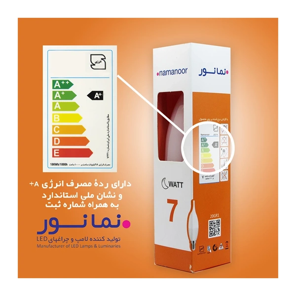 لامپ ال ای دی 7 وات نمانور مدل اشکی پایه E14