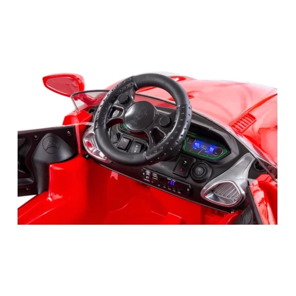 • ویژگی: – دارای MP3 Player با قابلیت اتصال رم و فلش و AUX – دارای 10 موزیک متنوع و صندلی تمام چرمی – دارای چراغ پرنور LED و SMD – دارای دو گیربکس پرقدرت و باطری 12ولت 7 آمپر – دارای ریموت کنترل هدایت ماشین – دارای 4 کمک فنر
