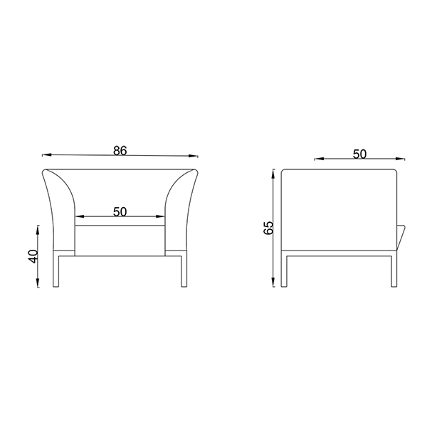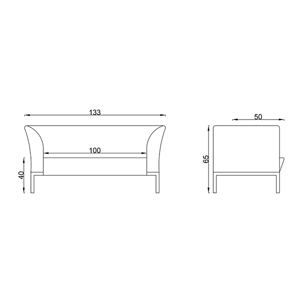 • طول نشیمن: دو نفره: 100 cm، یک نفره: 50 cm