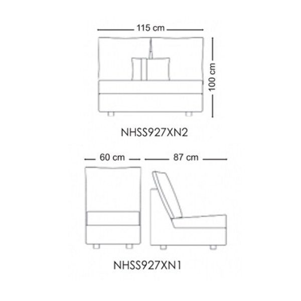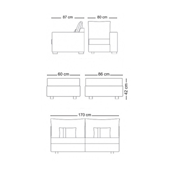 • نوع پشتی: به صورت جدا شونده و کوسن ها، پر شده با الیاف ویسکوز و تکه های فوم