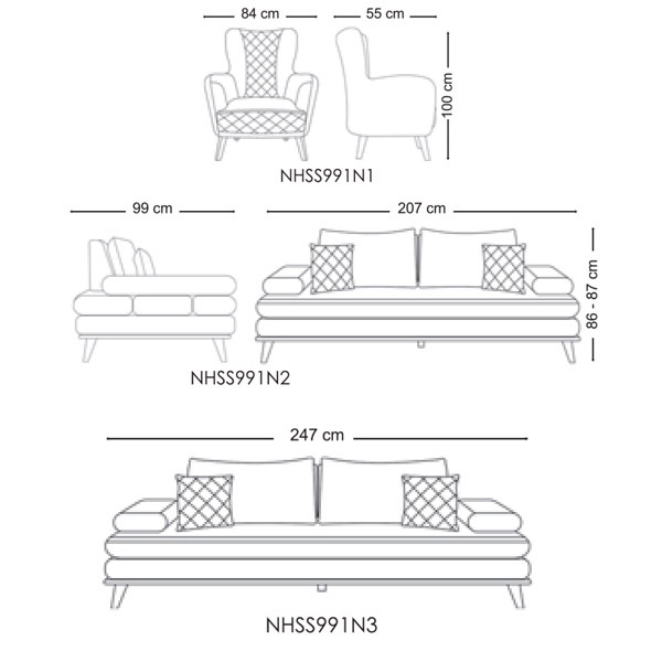 • اندازه سه نفره: 247*87*99 cm
