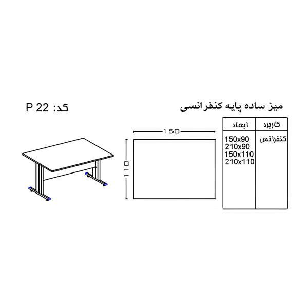 - ابعاد میز کنفرانس: 150*90 cm