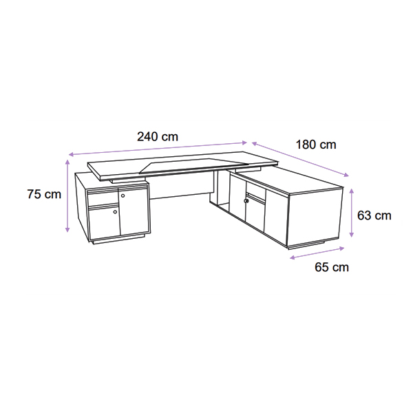 • سایر مشخصات: قابلیت سفارش با مدیا باکس، اتصالات پایه ها، صفحه ها و کشوها از نوع الیت، استفاده از MDF طرح سنگ برروی نمای فایل و ساید میز، ساختار صفحات ضخیم بصورت Honeycombs می باشد، ضخامت صفحه رویی 48 میلی متری، کمدها بصورت دو طبقه و دارای لولای ساده آرام بند