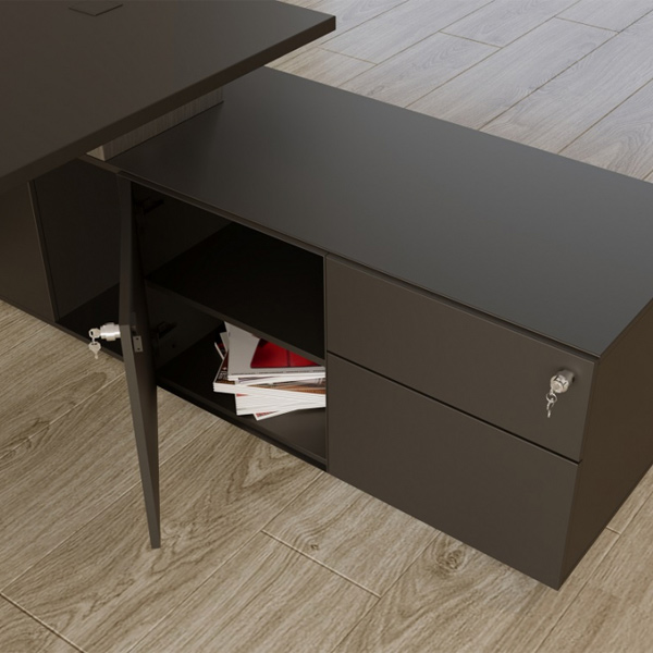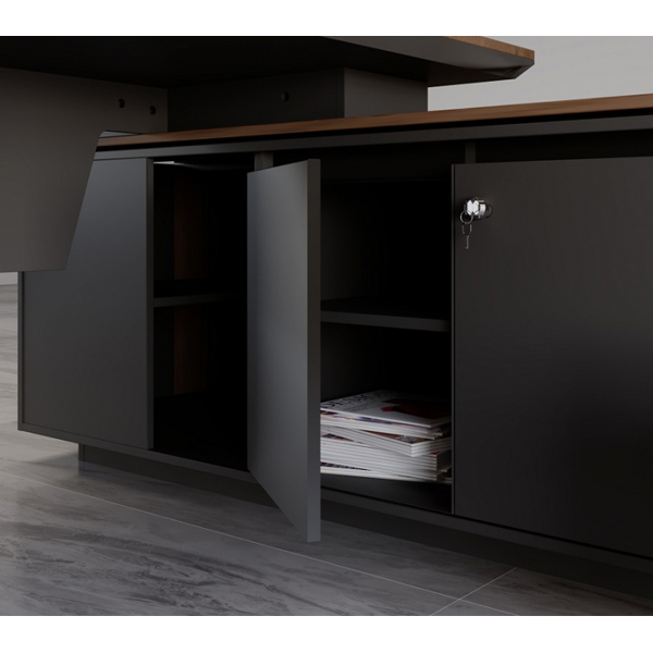 - سایر مشخصات: قابلیت سفارش با مدیا باکس، اتصالات پایه ها و صفحه ها از نوع الیت و لامو، ضخامت صفحه رویی 48 میلی متری، کمدها بصورت دو طبقه و دارای لولای ساده آرام بند
