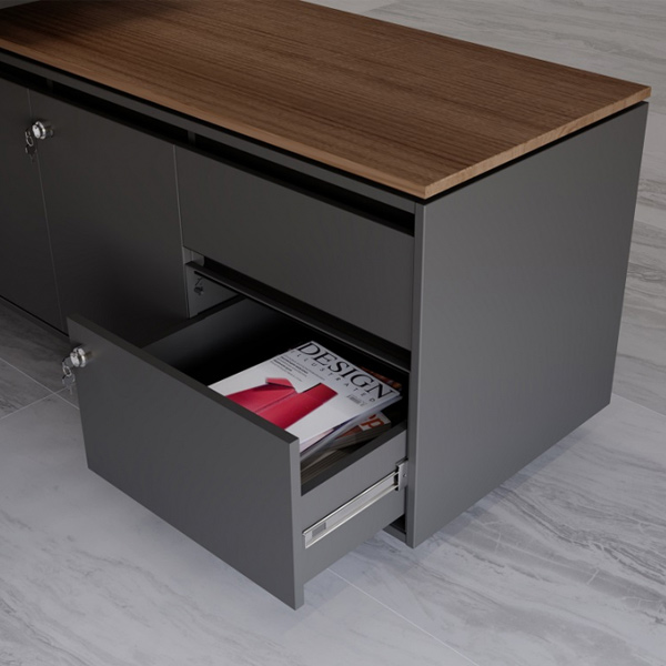 - کشو: دستگیره کشوها بصورت توکار بوده و جنس آن از آلومینیوم می باشد، ریل کشوها بصورت مخفی و دارای آرام بند می باشد، قفل کشوها بصورت کلید دار می باشد و اتصال آنها توسط الیت