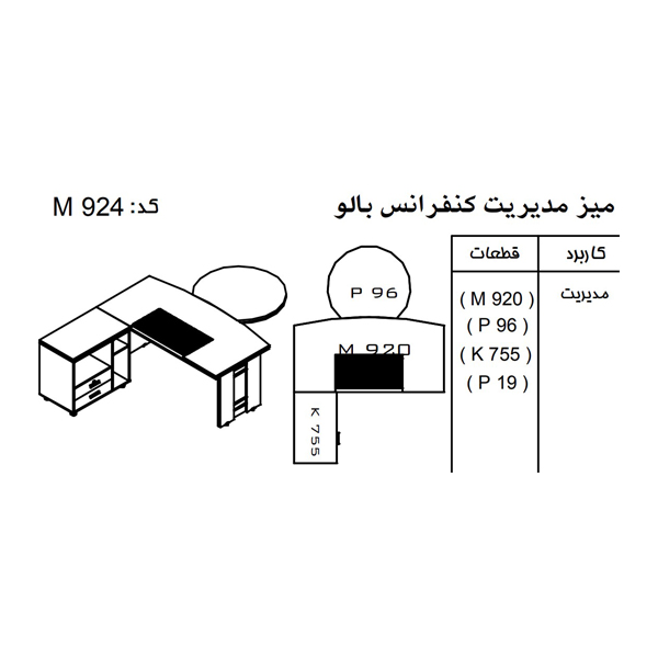 • ست شامل: میز دایره ای متصل، میز مدیریت ال