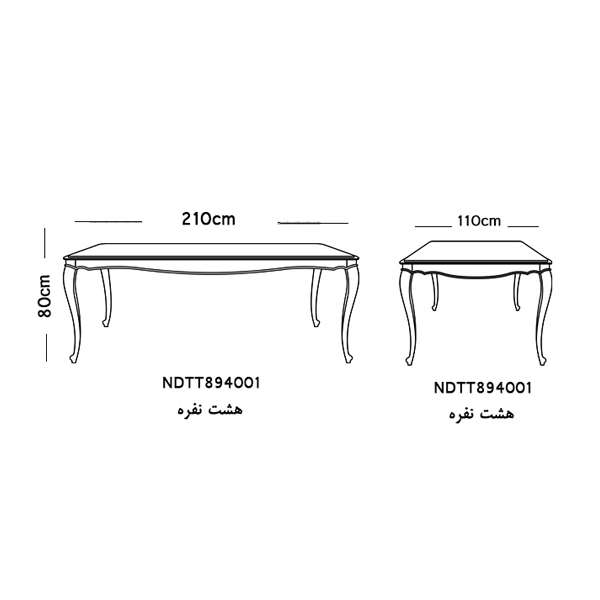 • ابعاد هشت نفره: 210*110*80 cm
