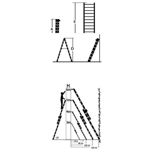 ارتفاع نردبان در حالت دو طرفه
