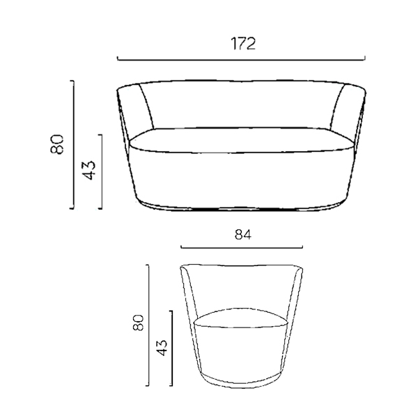 • قطر پشتی: دو نفره: 172 cm، یک نفره: 84 cm