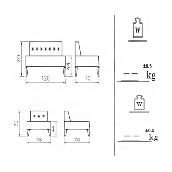 • طول: دو نفره: 120 cm، یک نفره: 76 cm