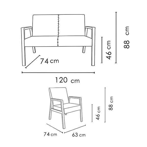 - طول: دو نفره: 120 cm، یک نفره: 63 cm