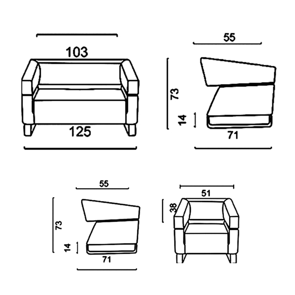 • طول نشیمن: دو نفره: 103 cm