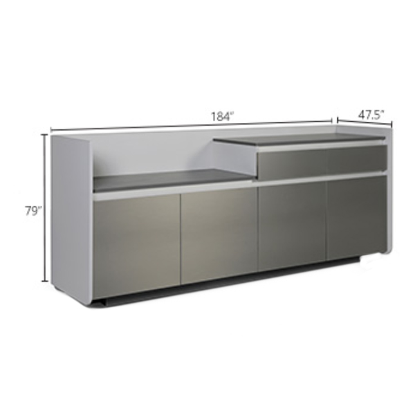 • ویژگی: اتصالات از شرکت Blum اتریش و Hafele آلمان تامین می‌گردد.، دارای دستگیره‌های آلومینیومی با یراق آلات اتصال Fantoni، قطعات نما و پانل جلوی میز از جنس MDF هایگلاس، مجهز به ریل کشو مدل Tandem Box از نوع Full Extension با مکانیزم آرام ‌بند