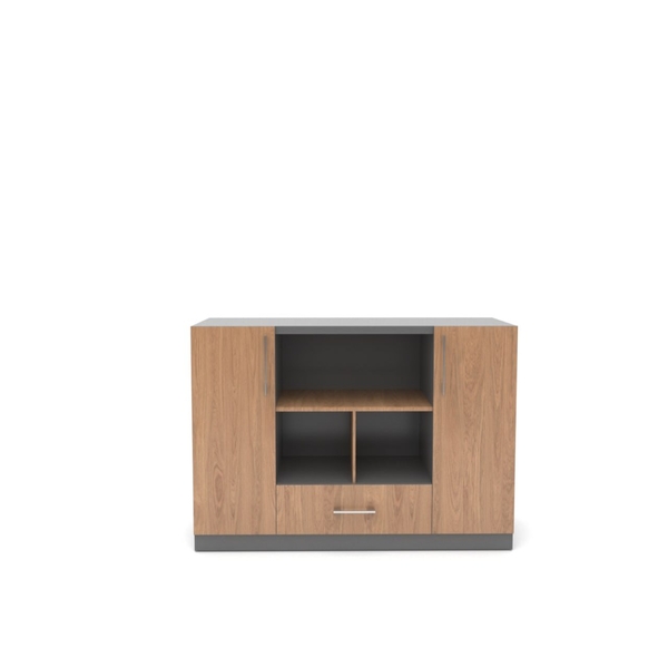 داراي دو کمد درب دار و یک کشو, دارای دستگیره آلومینیومی, دارای ریل مخفی برای کشوها, کمد دارای دو طبقه متحرک, کمد دارای یک طبقه متحرک