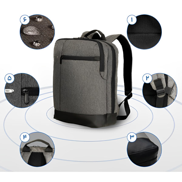 - ویژگی: دارای بند نگهدارنده کوله توسط دسته ترولی چمدان، دارای پد ارگونومی و شیار عبور هوا در جهت عدم خستگی و جلوگیری از تعریق، دارای دسته نگهدارنده چرمی جهت بلند کردن و حمل راحت تر، دارای سگک تنظیم کننده ارتفاع بند دوشی، دارای فضای مشخص لپتاپ و تبلت، ظاهری زیبا و مینیمال، محفظه بزرگ دارای جیب های تفکیک شده