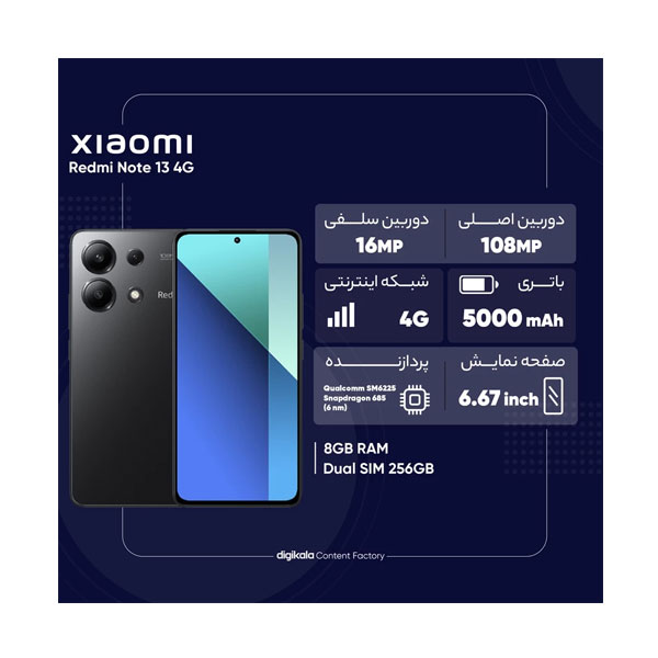 گوشی شیائومی مدل Redmi Note 13 ظرفیت 256 گیگ رم 8 گیگ